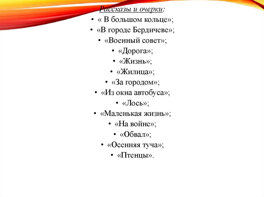 Рассказы и очерки:• « В большом кольце»;
