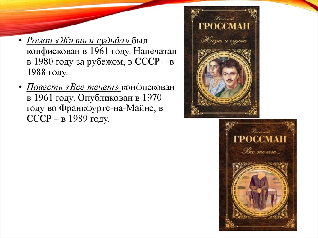 • Роман «Жизнь и судьба» былконфискован в 1961 году. Напечатан