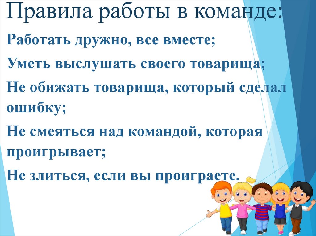 Правила работы в команде:Работать дружно, все вместе;