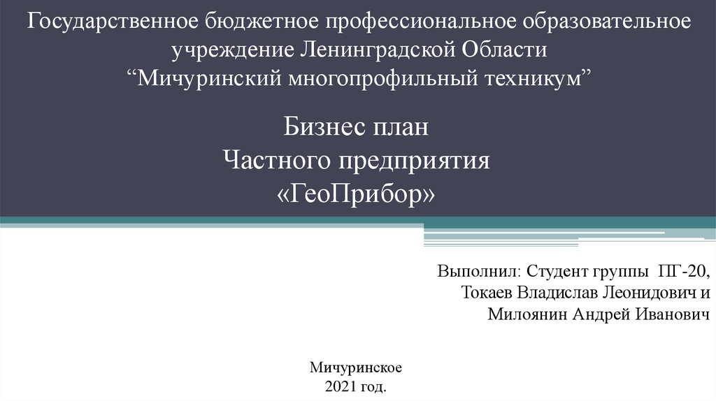 1. Государственное бюджетное профессиональное образовательное учреждение Ленинградской Области “Мичуринский многопрофильный