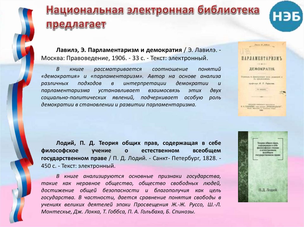 Лавилэ, Э. Парламентаризм и демократия / Э. Лавилэ. Москва: Правоведение, 1906. - 33 с. - Текст: электронный.В