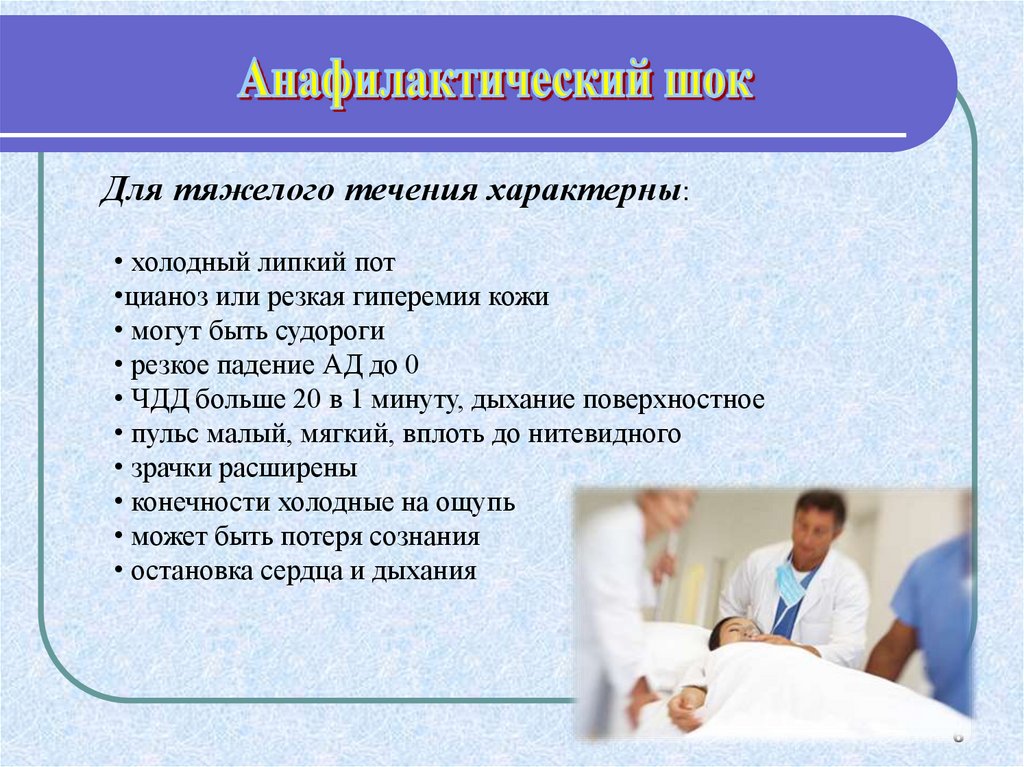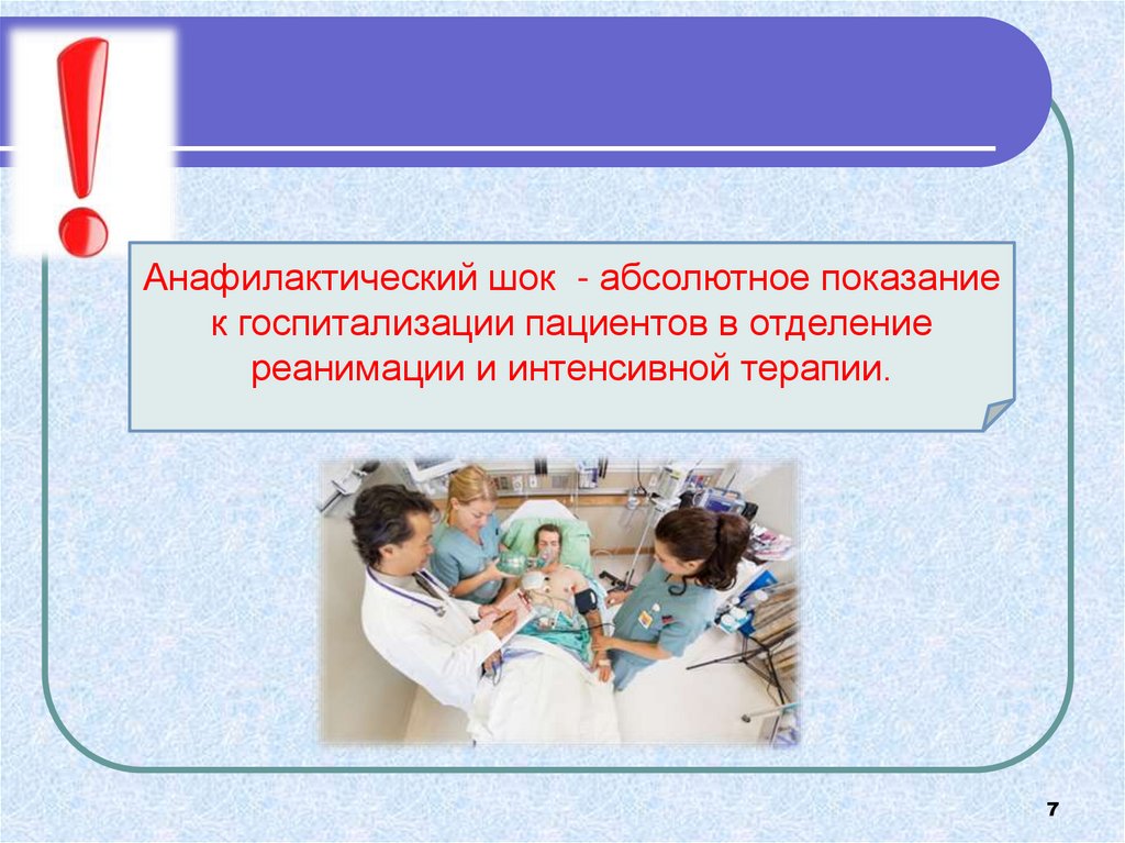Анафилактический шок - абсолютное показаниек госпитализации пациентов в отделение