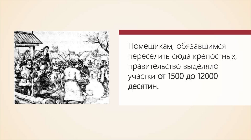 Помещикам, обязавшимсяпереселить сюда крепостных,