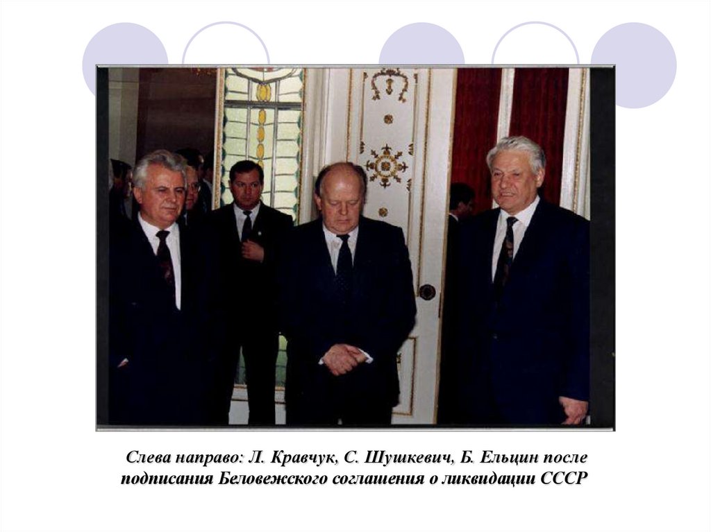 (Б. Ельцин, С. Шушкевич, Л. Кравчук) 8 декабря