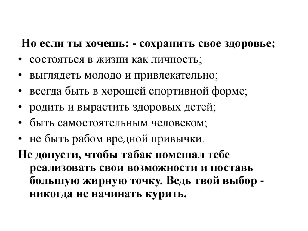 Но если ты хочешь: - сохранить свое здоровье;• состояться в жизни как личность;