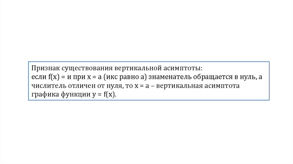 числитель отличен от нуля, то х = а – вертикальная асимптота