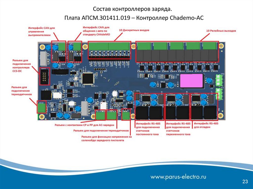 Состав контроллеров заряда.Плата АПСМ.301411.019 – Контроллер Chademo-AC