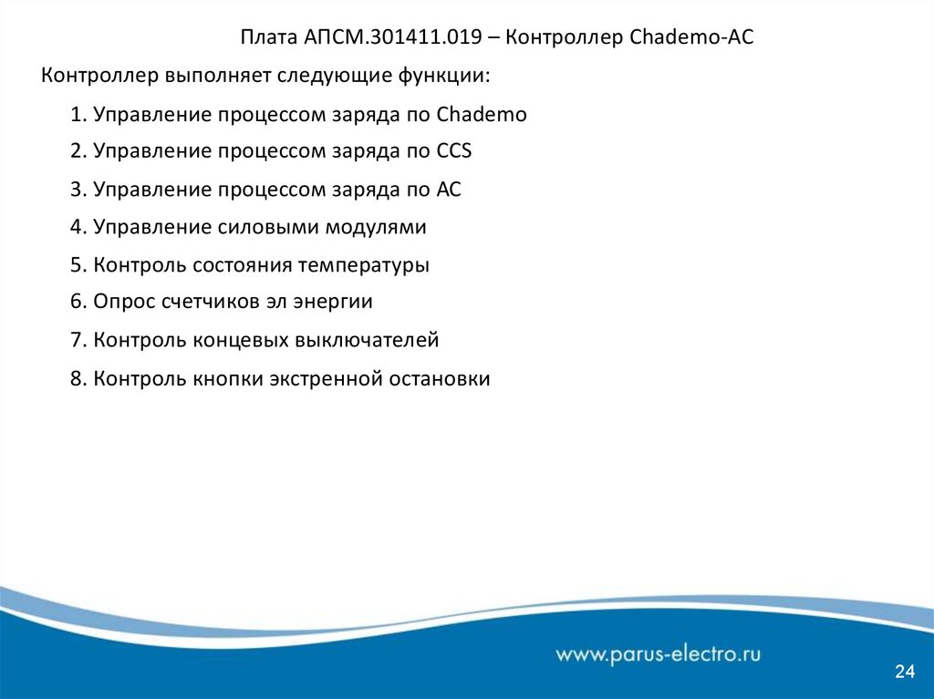 Плата АПСМ.301411.019 – Контроллер Chademo-ACКонтроллер выполняет следующие функции: