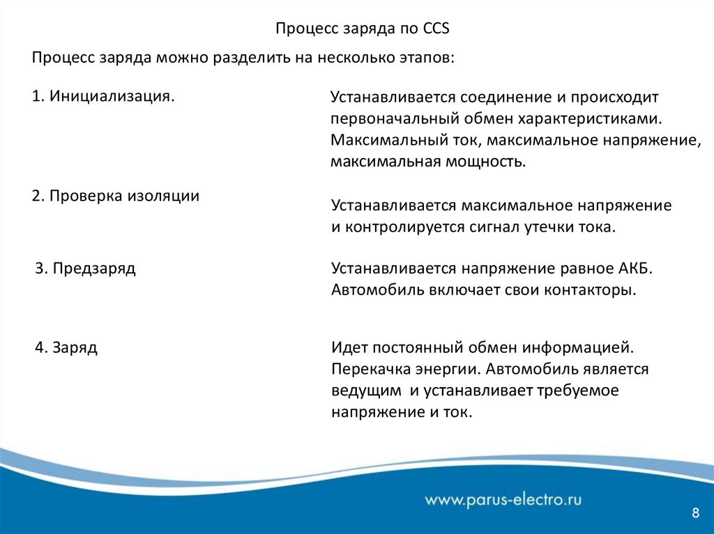 Процесс заряда по ССSВиды разъемов ССS Combo заряда