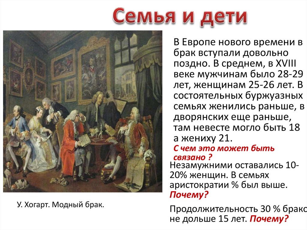 В Европе нового времени вбрак вступали довольно
