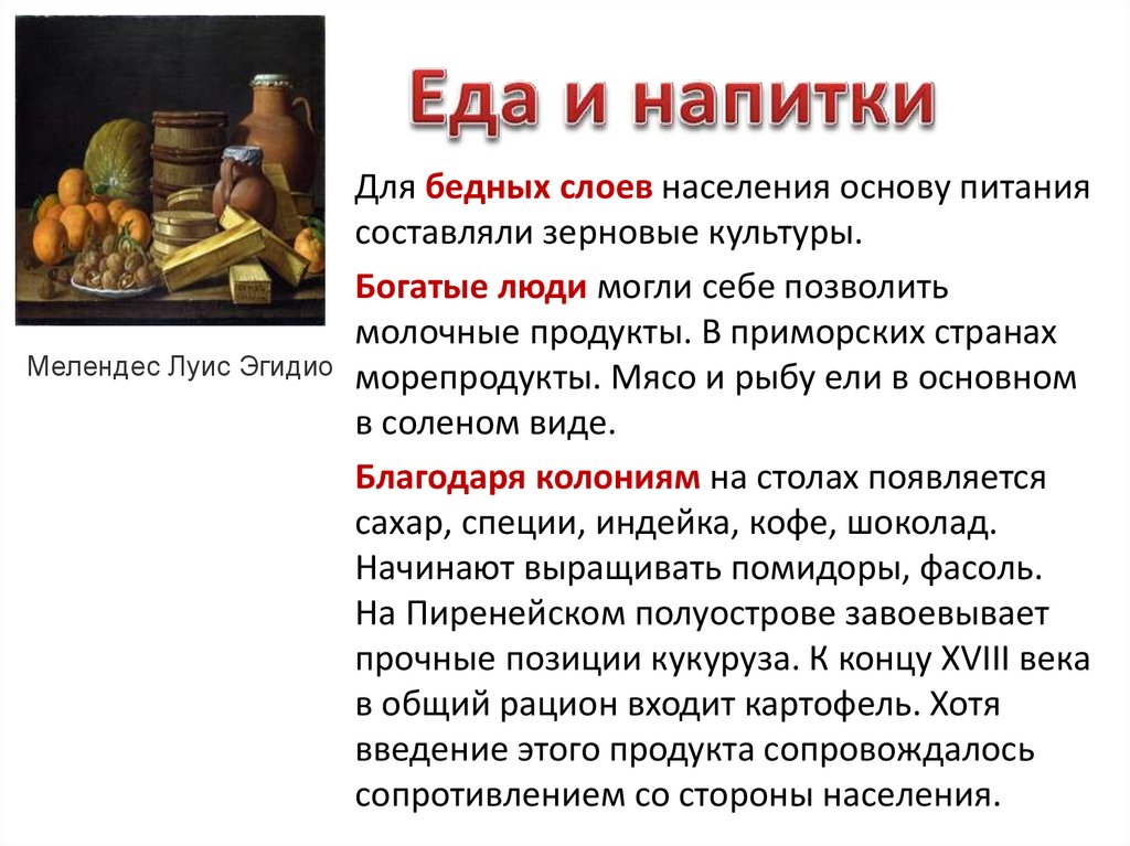 Мелендес Луис ЭгидиоДля бедных слоев населения основу питания