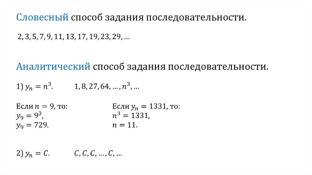 Словесный способ задания последовательности.Аналитический способ задания последовательности.