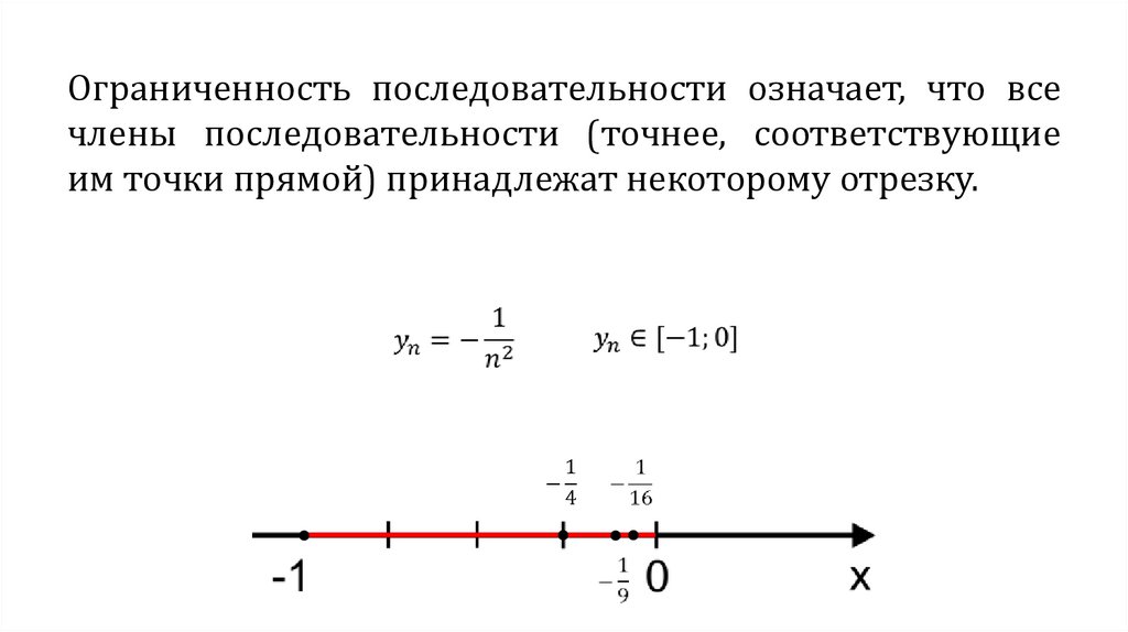 Ограниченность последовательности означает, что всечлены последовательности (точнее, соответствующие