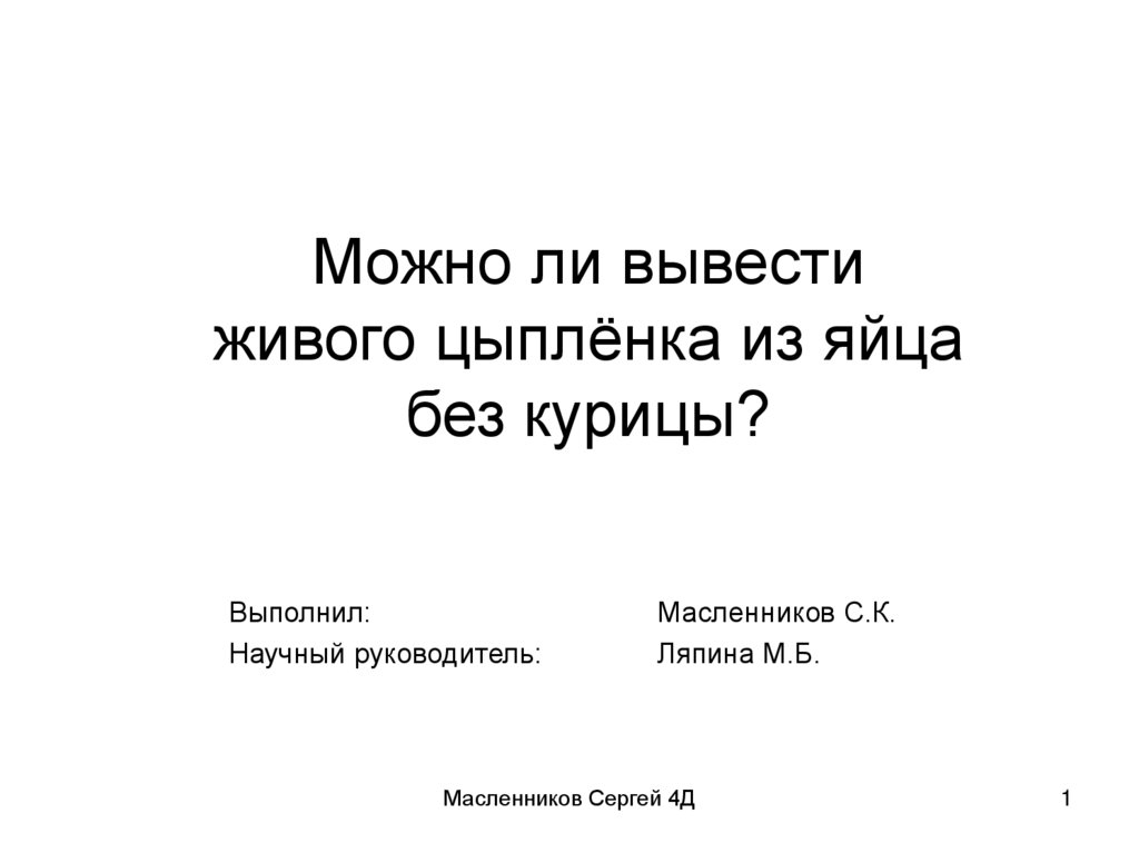 1. Можно ли вывести живого цыплёнка из яйца без курицы?