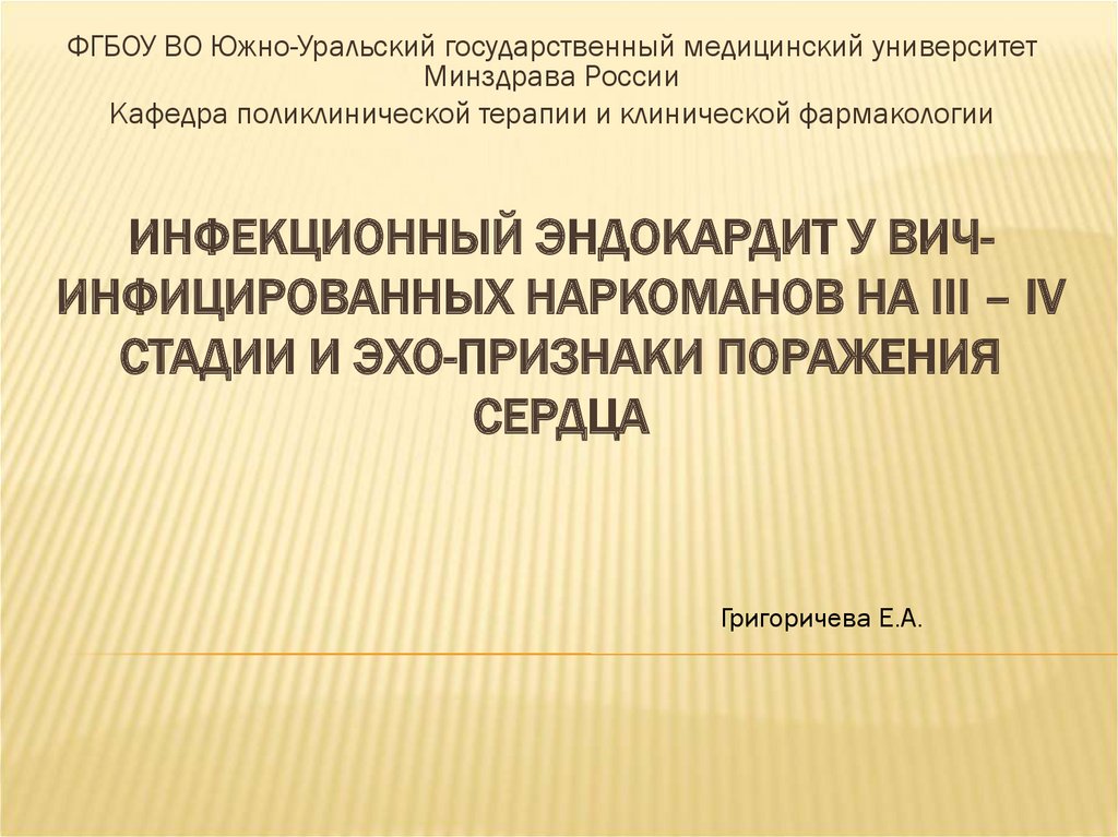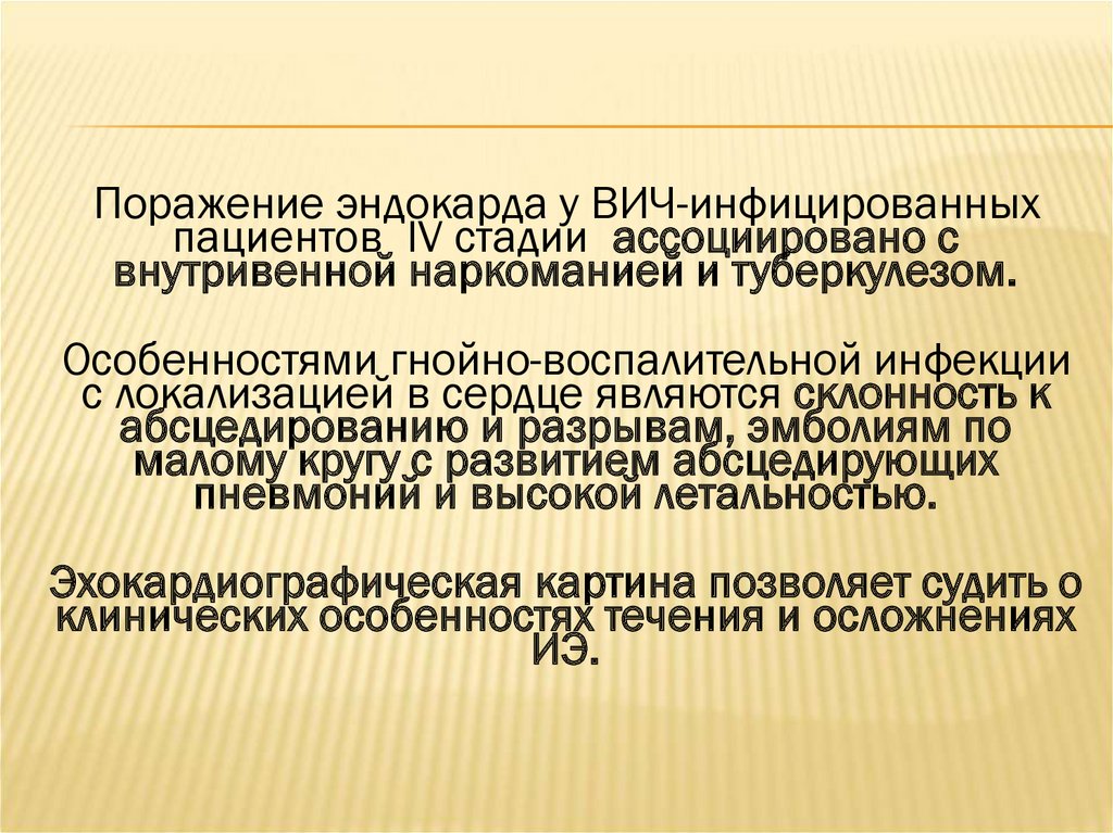 Инфекционный эндокардит у ВИЧ-инфицированных наркоманов на 3 – 4 стадии и эхо-признаки поражения сердца