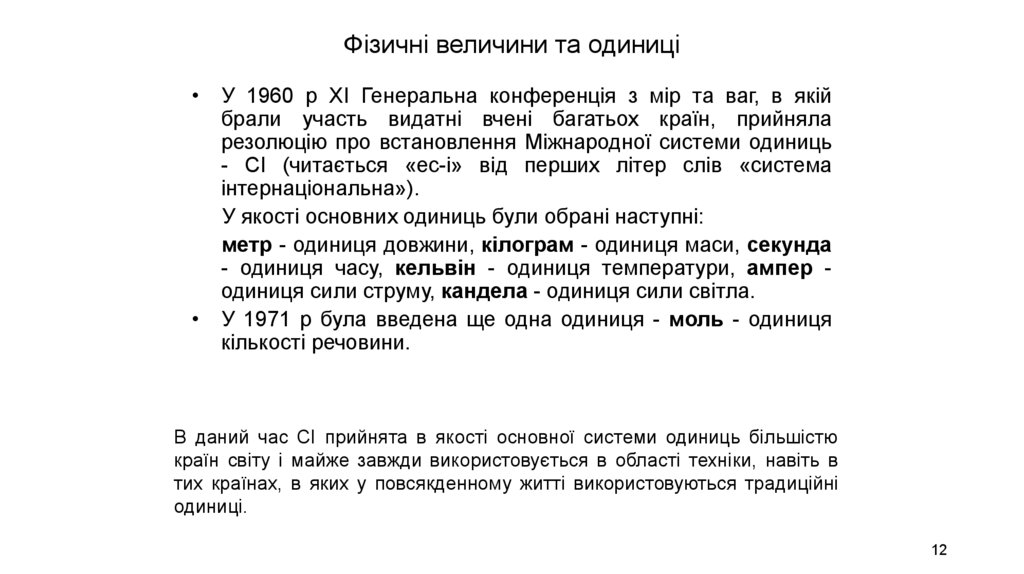 • У 1971 р була введена ще одна одиниця - моль - одиниця