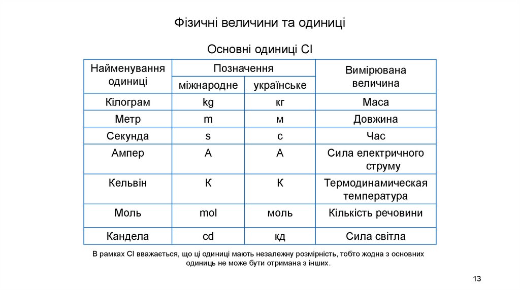 Фізичні величини та одиниціОсновні одиниці СІ