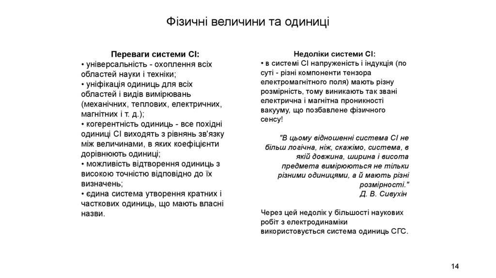 Фізичні величини та одиниціПереваги системи СІ: