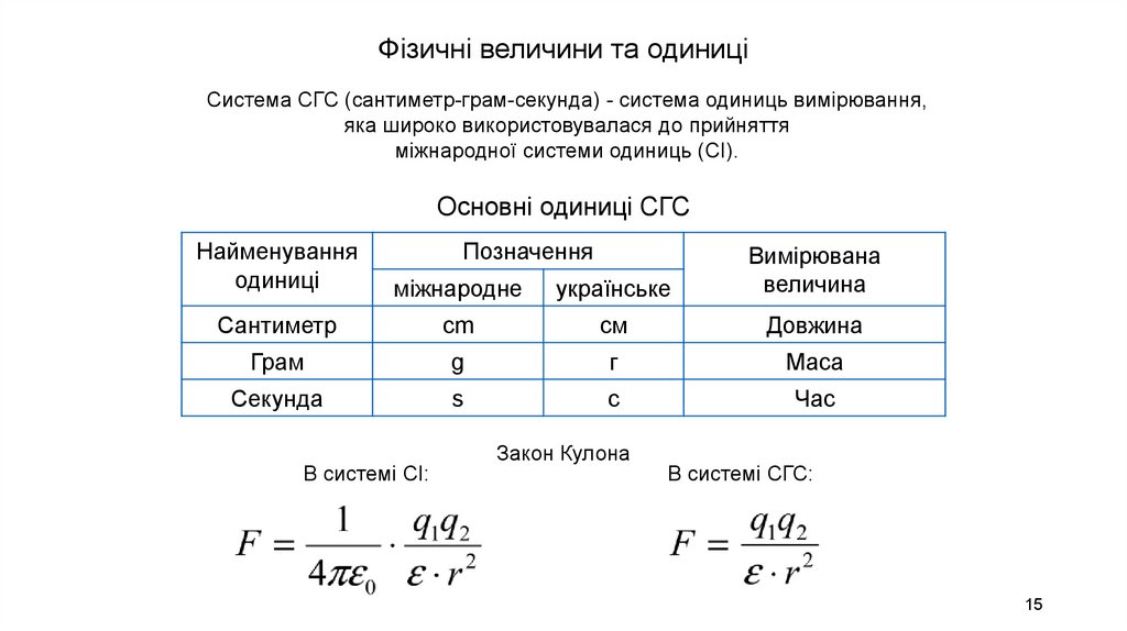 Фізичні величини та одиниціСистема СГС (сантиметр-грам-секунда) - система одиниць вимірювання,