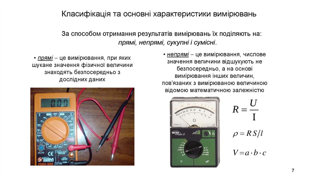 • прямі це вимірювання, при яких