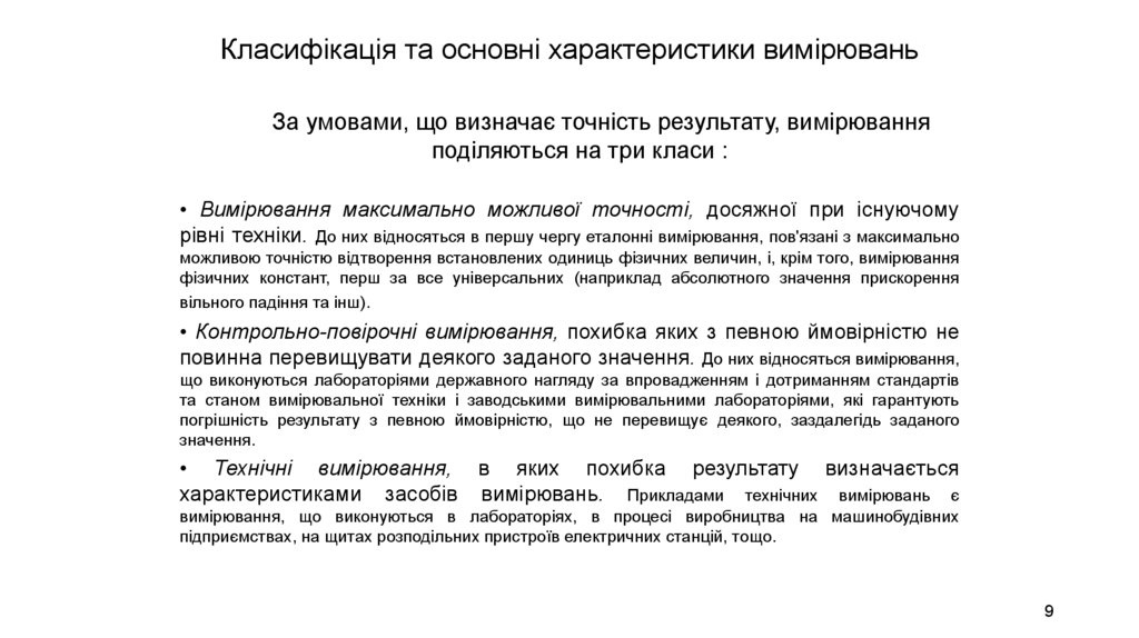 Класифікація та основні характеристики вимірюваньЗа характером залежності вимірюваної величини від часу