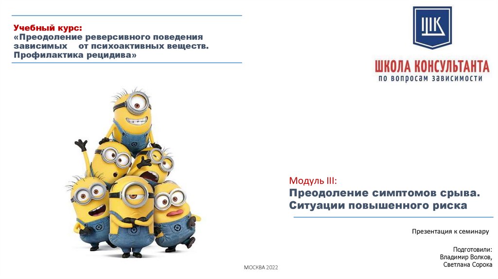 1. Учебный курс: «Преодоление реверсивного поведения зависимых от психоактивных веществ. Профилактика рецидива»