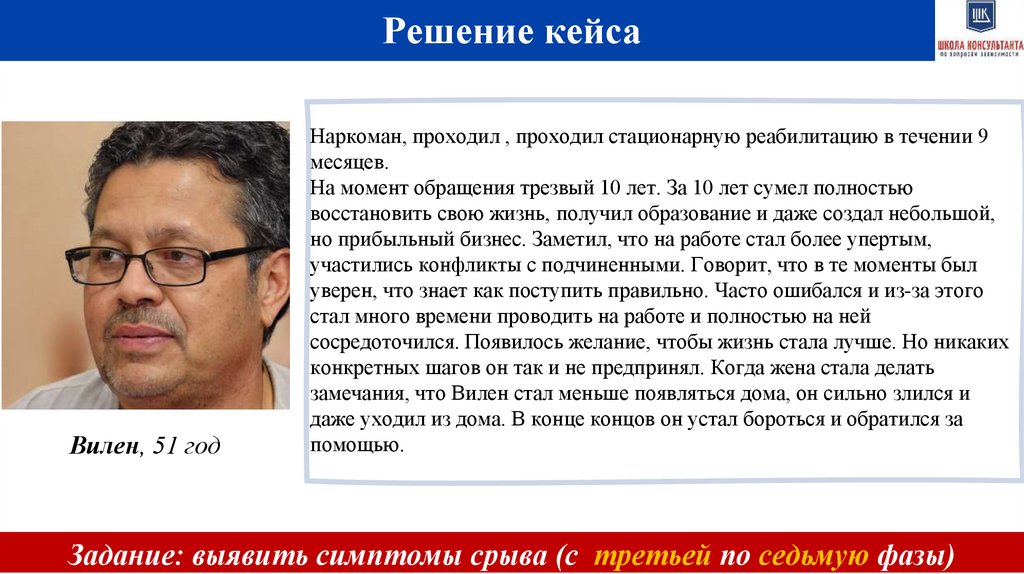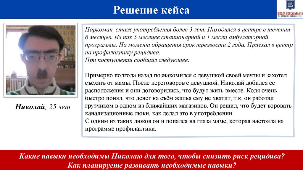 Решение кейсаКакие навыки необходимы Вилену для того, чтобы снизить риск рецидива?