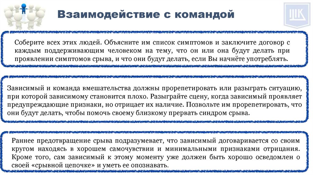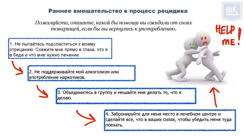 Раннее вмешательство в процесс рецидиваЕсли вы вернулись к употреблению, ваши товарищи попытались заставить вас