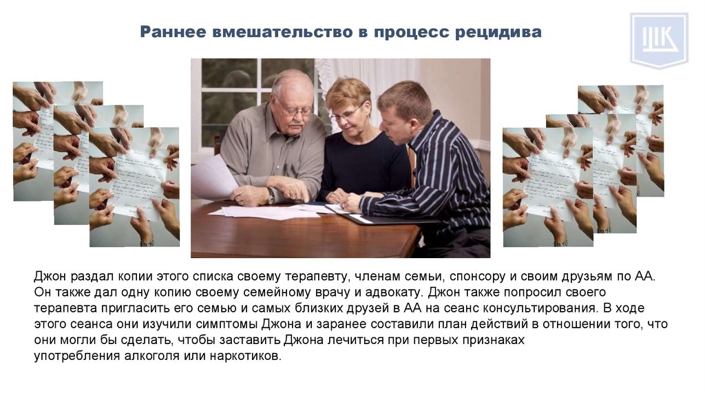 Раннее вмешательство в процесс рецидиваДжон раздал копии этого списка своему терапевту, членам семьи, спонсору и своим друзьям по АА.