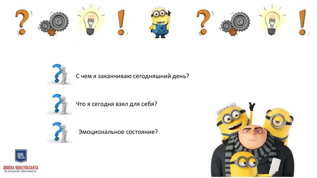 С чем я заканчиваю сегодняшний день?Что я сегодня взял для себя?