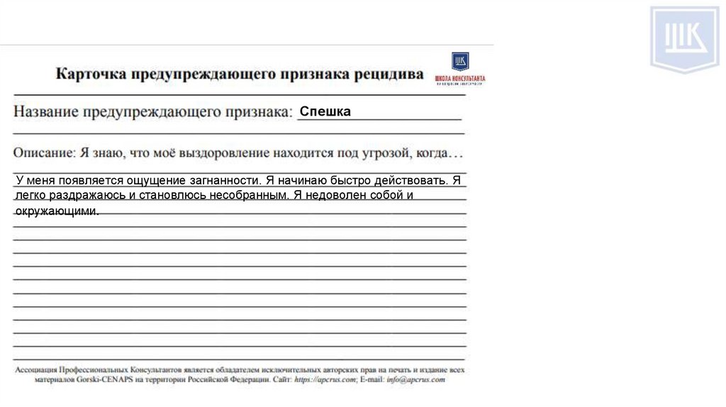 Раннее вмешательство в процесс рецидива1. Признайте, что я