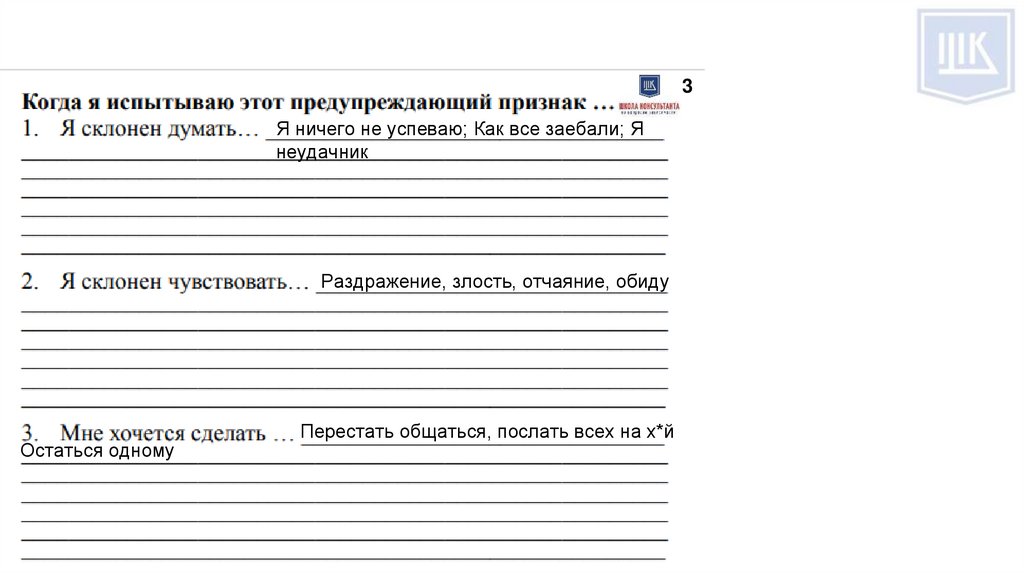 Задание: выявить симптомы срыва (с третьей по седьмую фазы).
