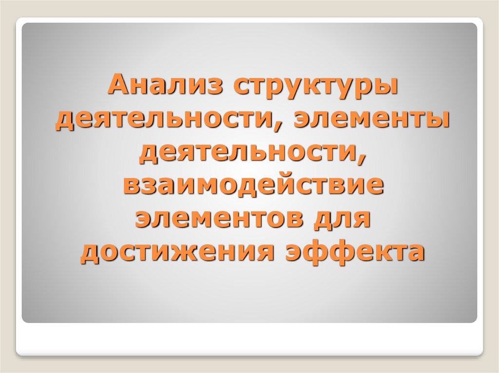 Анализ структуры деятельности, элементы деятельности, взаимодействие элементов для достижения эффекта