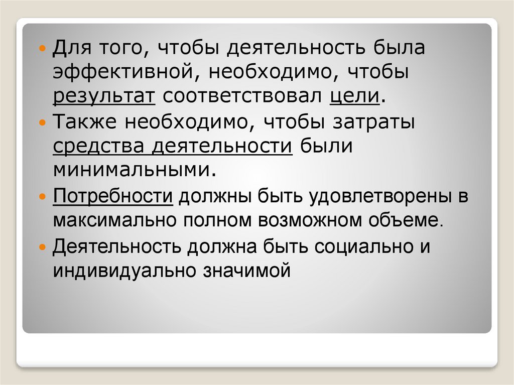 Для того, чтобы деятельность былаэффективной, необходимо, чтобы
