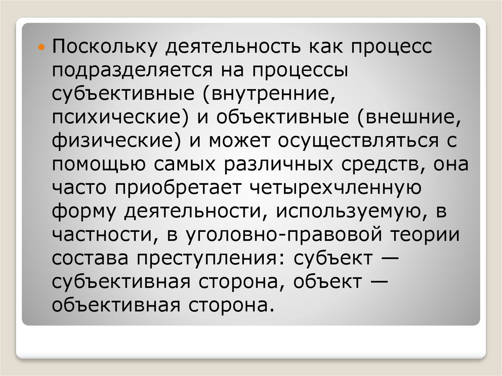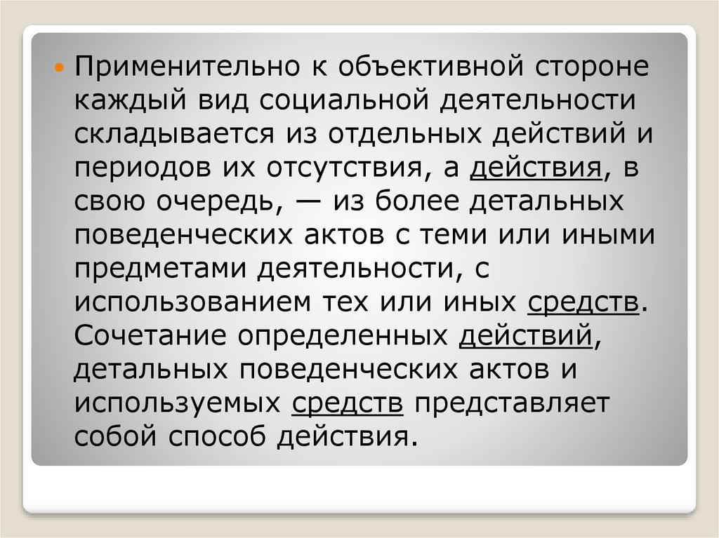 Применительно к объективной сторонекаждый вид социальной деятельности