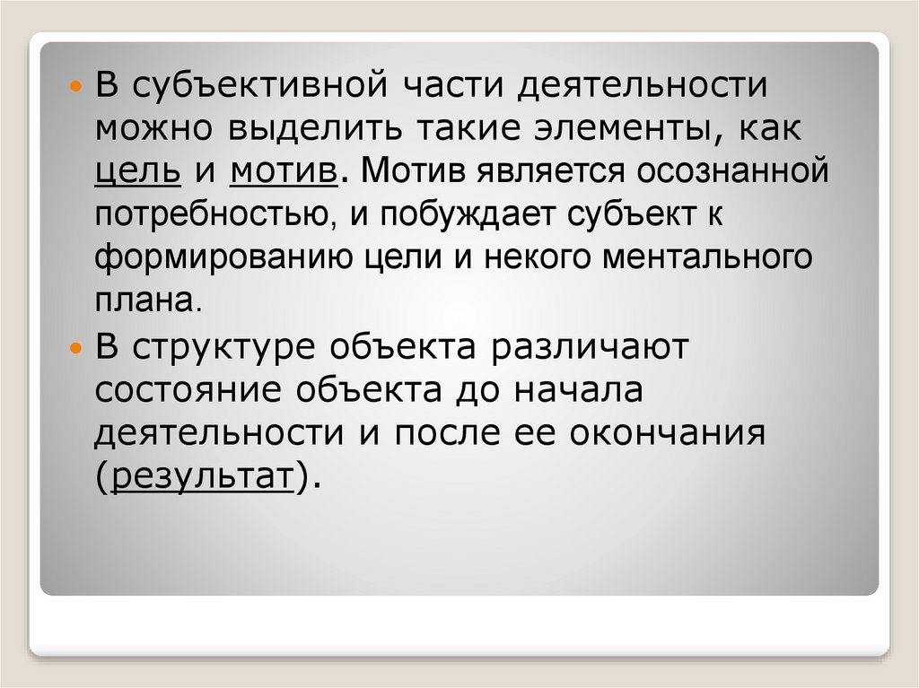 В наиболее общем виде структура всякой деятельностисостоит из нескольких элементов, три из которых