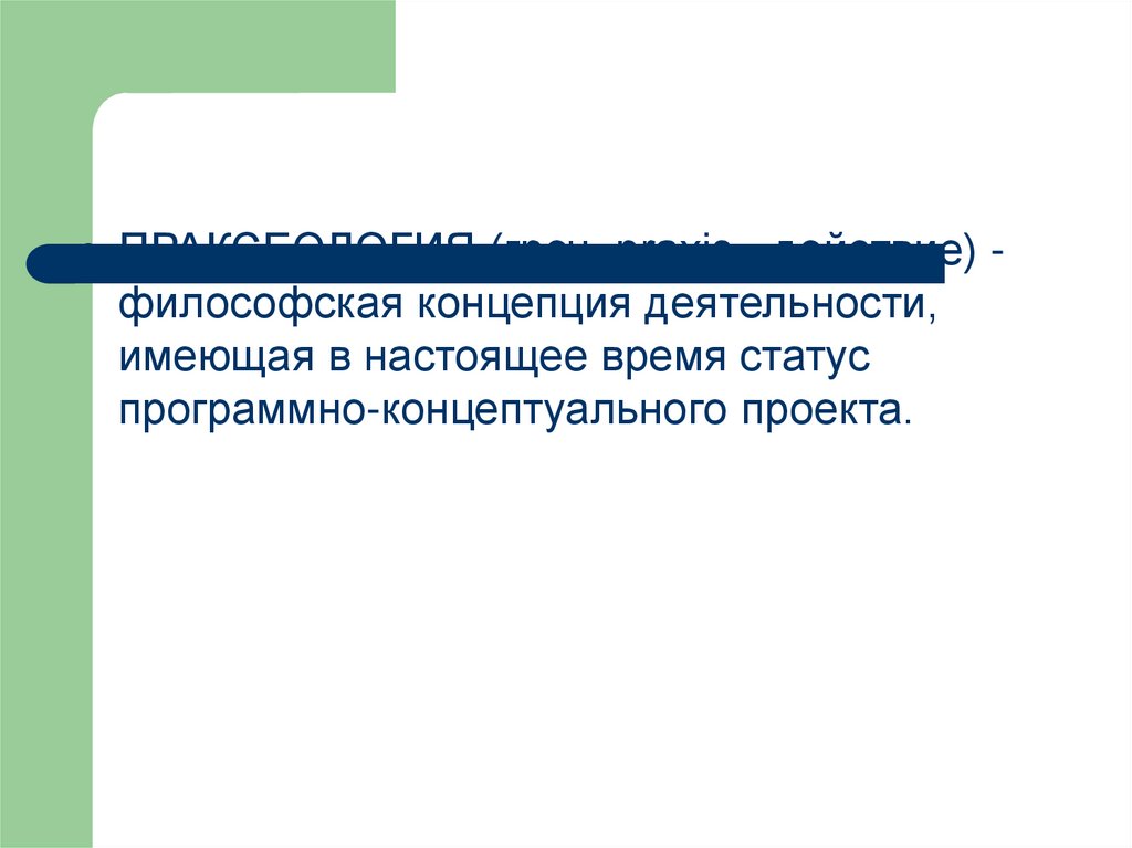ПРАКСЕОЛОГИЯ (греч. praxis - действие) философская концепция деятельности,имеющая в настоящее время статус