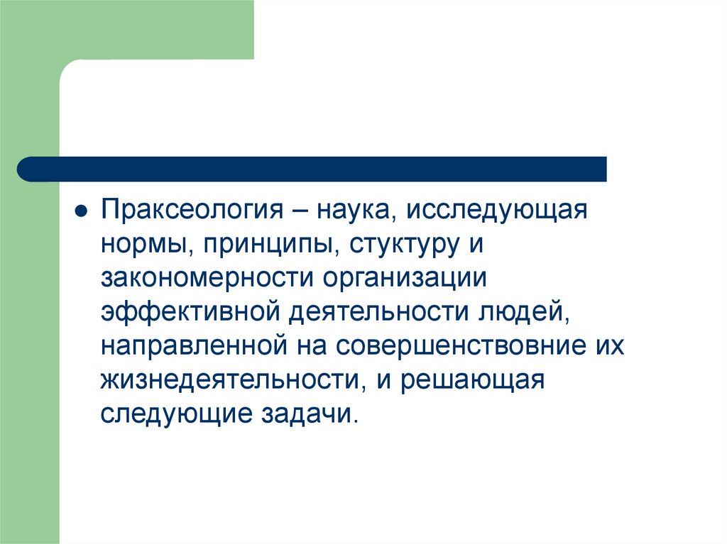 Праксеология – наука, исследующаянормы, принципы, стуктуру и