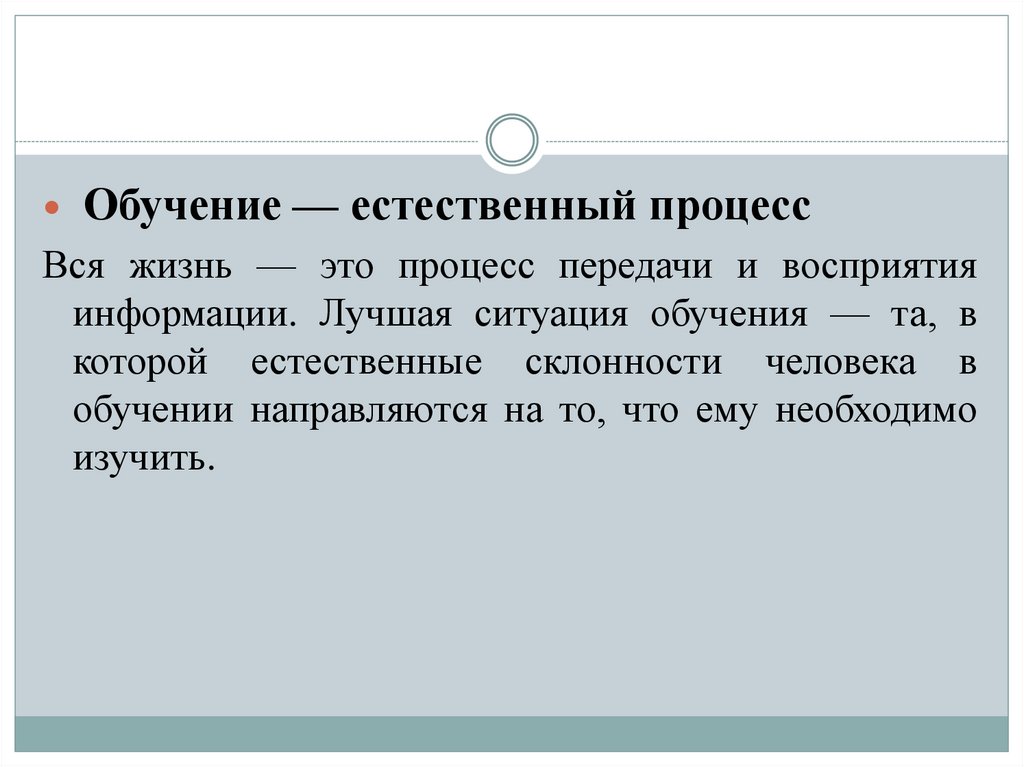 Обучение — естественный процессВся жизнь — это процесс передачи и восприятия