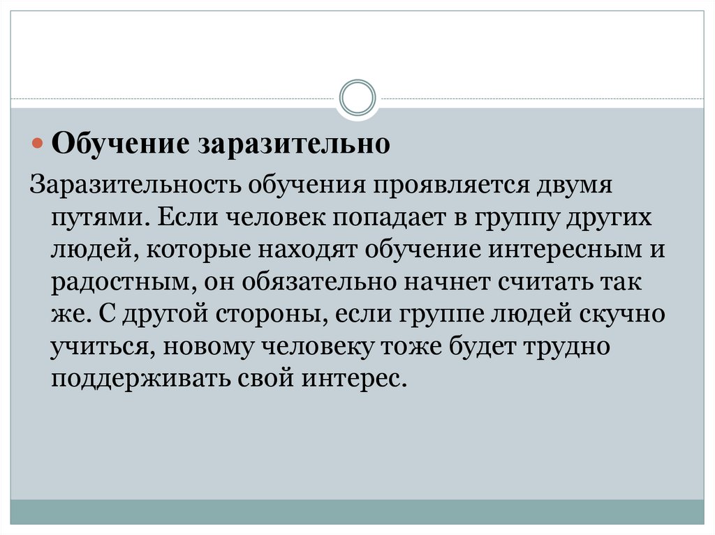 Обучение заразительноЗаразительность обучения проявляется двумя