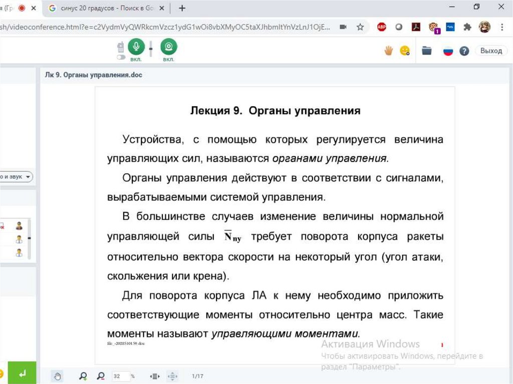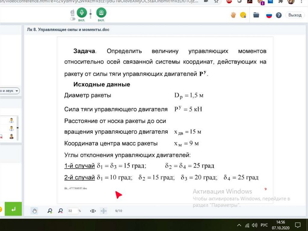 Управляющие силы и моменты