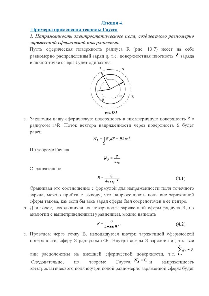 Лекция 4.Примеры применения теоремы Гаусса