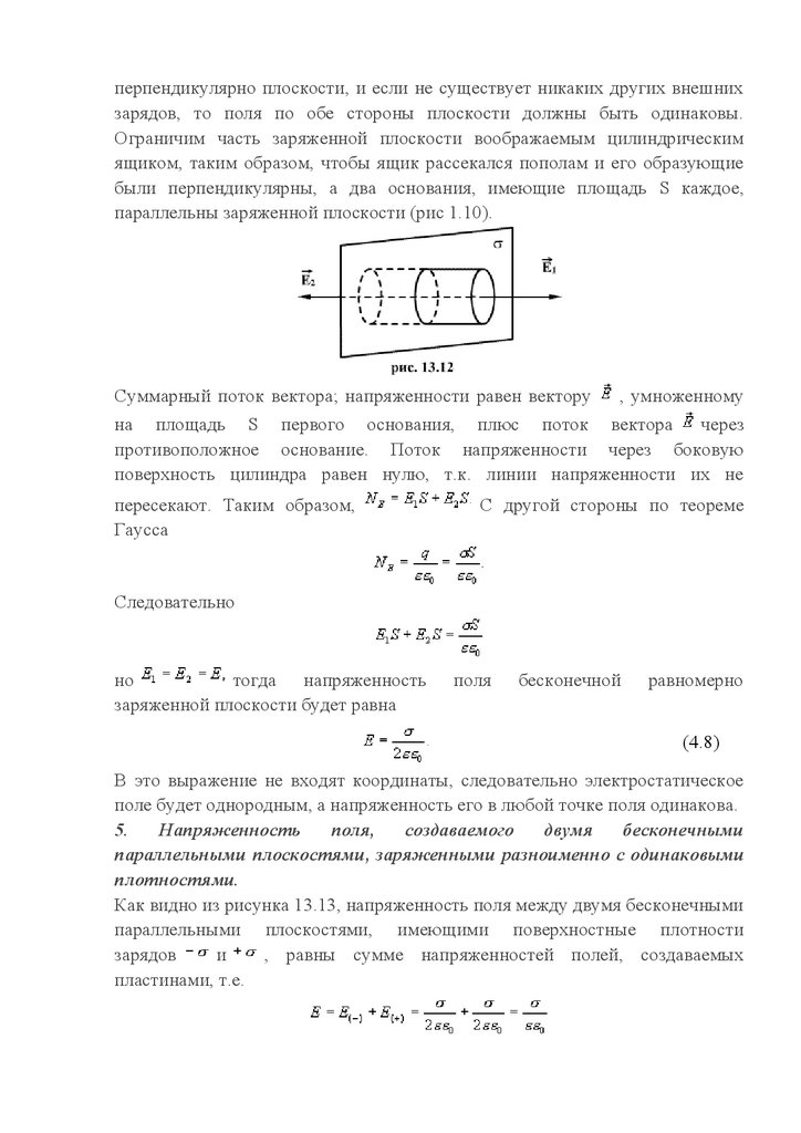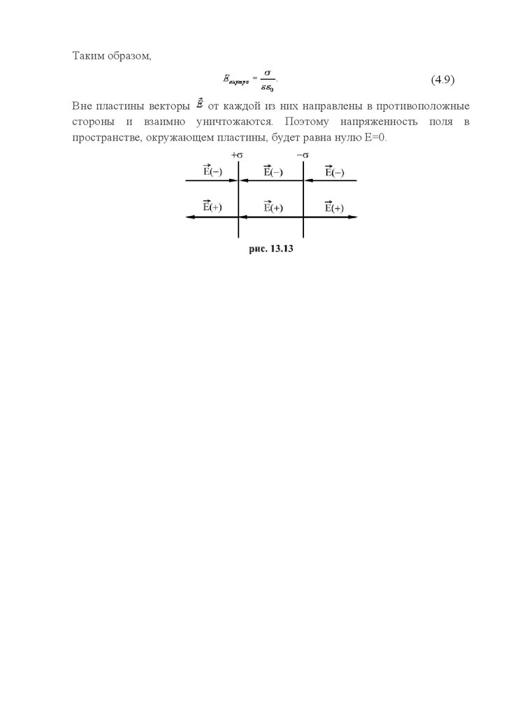 перпендикулярно плоскости, и если не существует никаких других внешнихзарядов, то поля по обе стороны плоскости должны быть одинаковы.