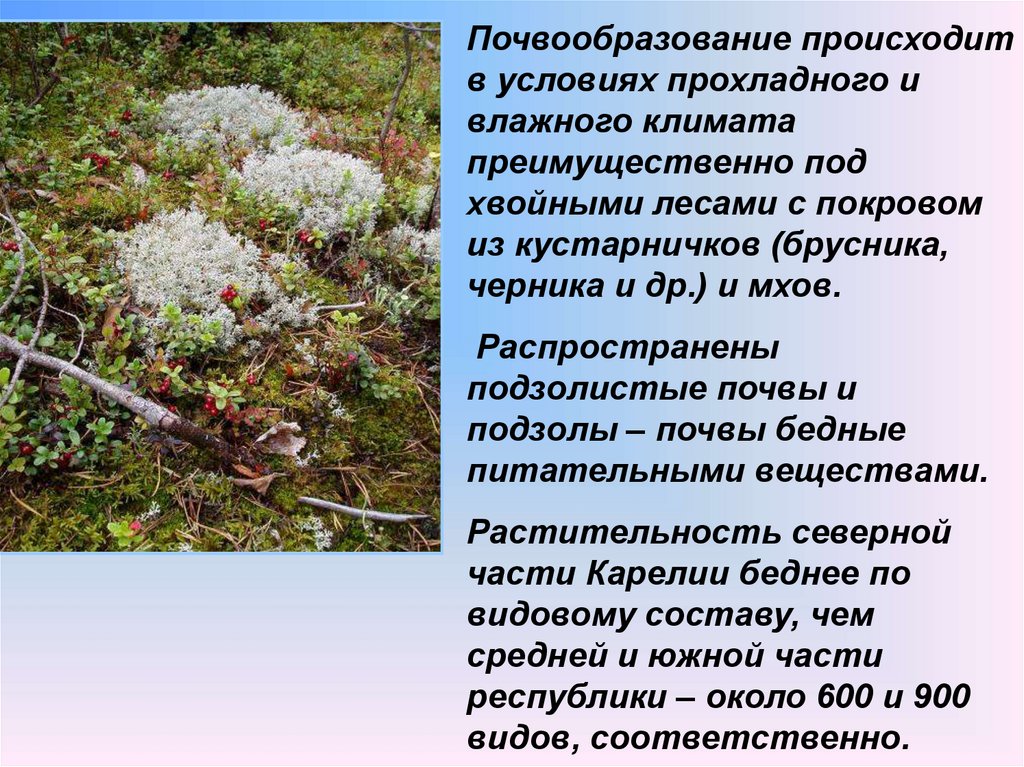 Почвообразование происходитв условиях прохладного и