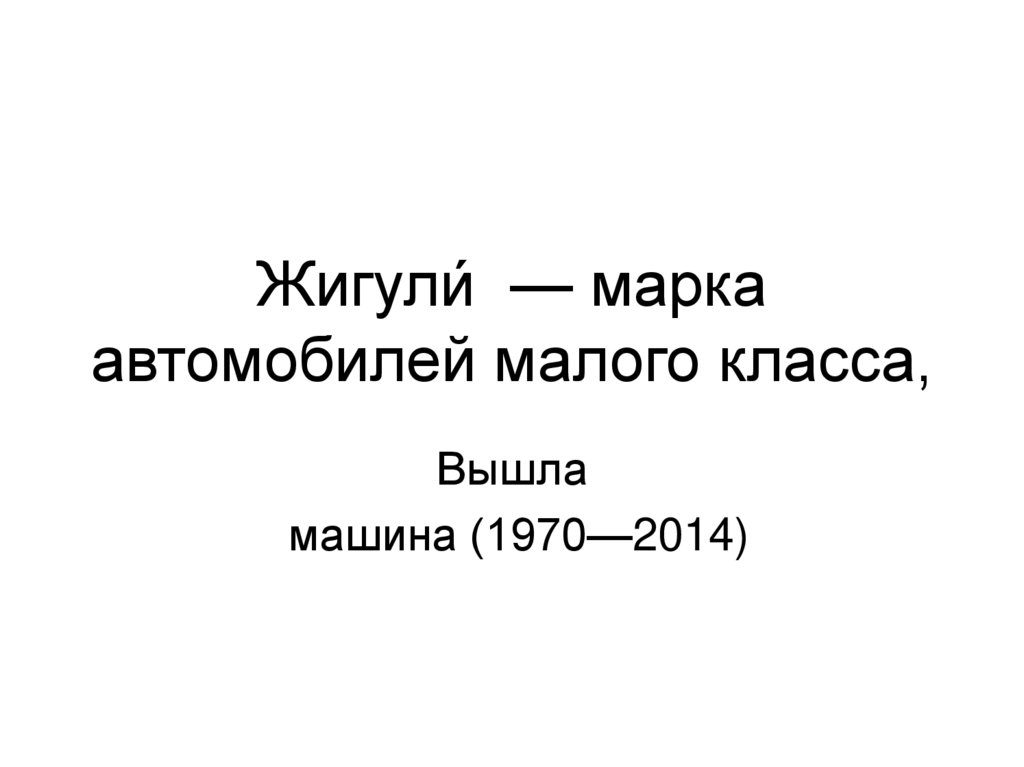 1. Жигули́ — марка автомобилей малого класса,