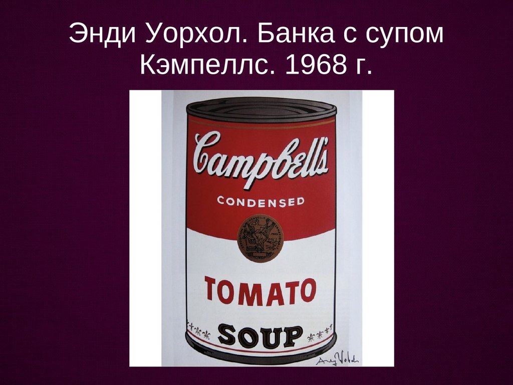 Энди XVIII — XXI вв.Уорхол. XVIII — XXI вв.Банка XVIII — XXI вв.с XVIII — XXI вв.супом XVIII — XXI вв.Кэмпеллс. XVIII — XXI вв.1968 XVIII — XXI вв.г.