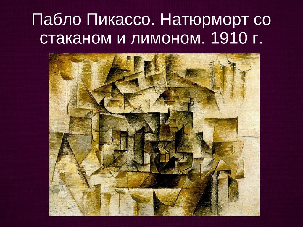 Пабло XVIII — XXI вв.Пикассо. XVIII — XXI вв.Натюрморт XVIII — XXI вв.со XVIII — XXI вв.стаканом XVIII — XXI вв.и XVIII — XXI вв.лимоном. XVIII — XXI вв.1910 XVIII — XXI вв.г.