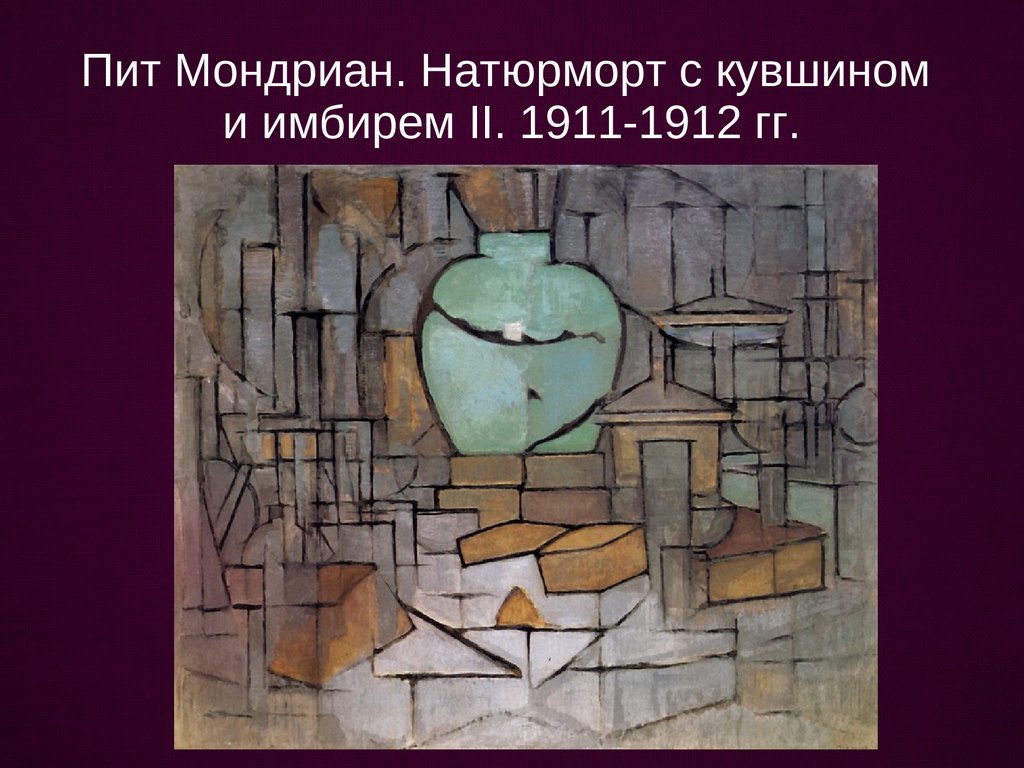 Пит XVIII — XXI вв.Мондриан. XVIII — XXI вв.Натюрморт XVIII — XXI вв.с XVIII — XXI вв.кувшином XVIII — XXI вв.и XVIII — XXI вв.имбирем XVIII — XXI вв.II. XVIII — XXI вв.1911-1912 XVIII — XXI вв.гг.