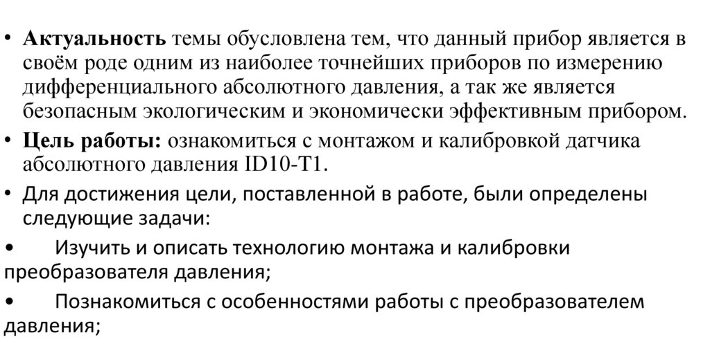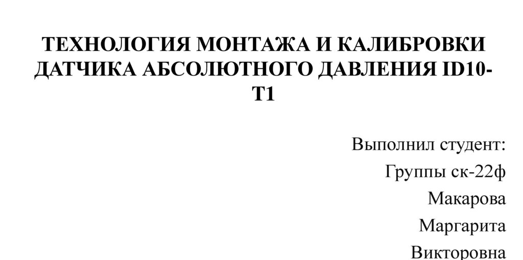 ТЕХНОЛОГИЯ МОНТАЖА И КАЛИБРОВКИДАТЧИКА АБСОЛЮТНОГО ДАВЛЕНИЯ ID10T1