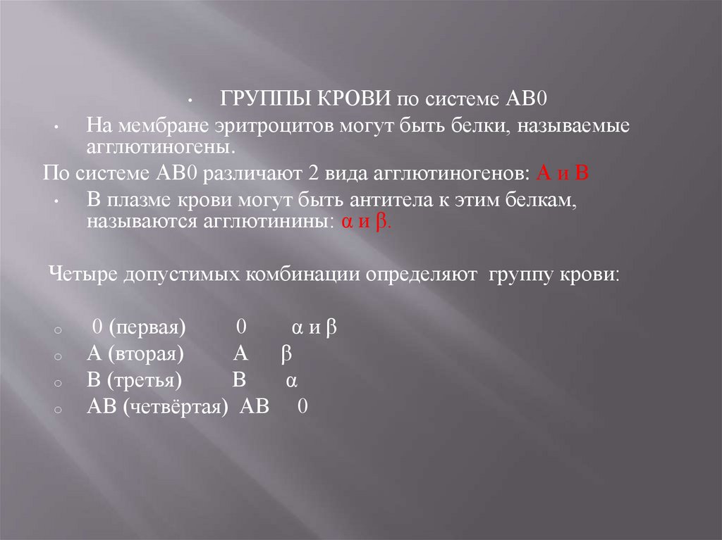 ГРУППЫ КРОВИ по системе АВ0На мембране эритроцитов могут быть белки, называемые